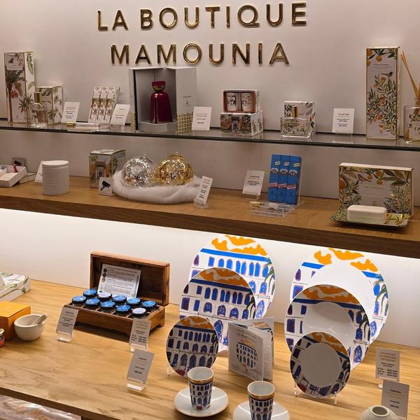 A loja La Boutique Mamounia propõe materializar a experiência de estadia no hotel - que ocupa terrenos e jardins históricos ligados a um antigo palácio do século 18 - em produtos. Dentre eles, fragrâncias e velas como o perfume‑assinatura de tâmaras e os aromas dos jardins, criados junto à casa de perfumaria francesa Maison Fragonard. Além disso, há itens de mesa posta, porcelanas, bandejas, bules e copos que repetem os códigos visuais da La Mamounia.