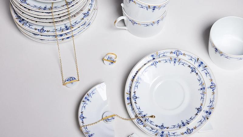 Na butique do estabelecimento parisiense, a estrela é o upcycling. A loja apresenta uma coleção-cápsula de joias feitas com fragmentos de porcelanas e louças quebradas do próprio hotel, como pratos, xícaras e travessas. Ao invés de descartadas, as peças foram lapidadas e fixadas em ouro ou prata. Esses “pedaços de história” do local viraram colares, anéis e brincos numerados, vendidos em edições limitadas. Os produtos são concebidos em parceria com seis joalheiros artesãos migrantes e refugiados ligados à associação La Fabrique Nomade.